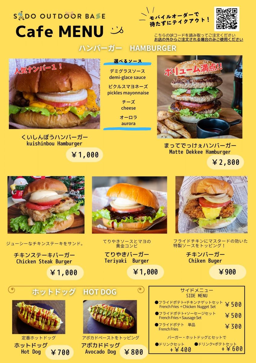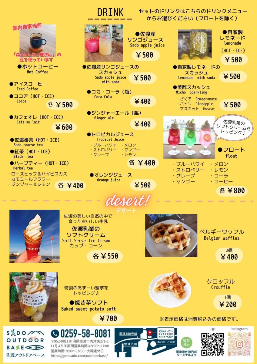 4月更新 最新版カフェメニュー【佐渡アウトドアベース】