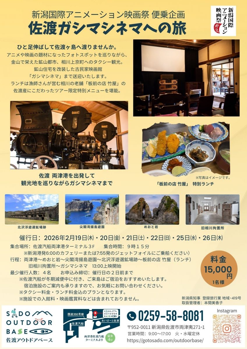 ・佐渡汽船が冬季減便中につき、ご来島はご宿泊をおすすめいたします。